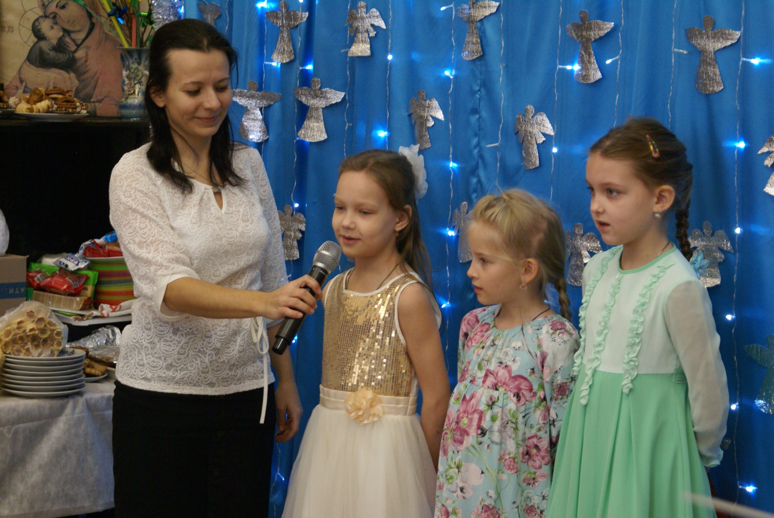 На импровизированном концерте младшая группа ребят выступили с трогательной мини-сценкой о Рождестве Христовом. Их искренность и простота никого не оставила равнодушными. Все хлопали от души.