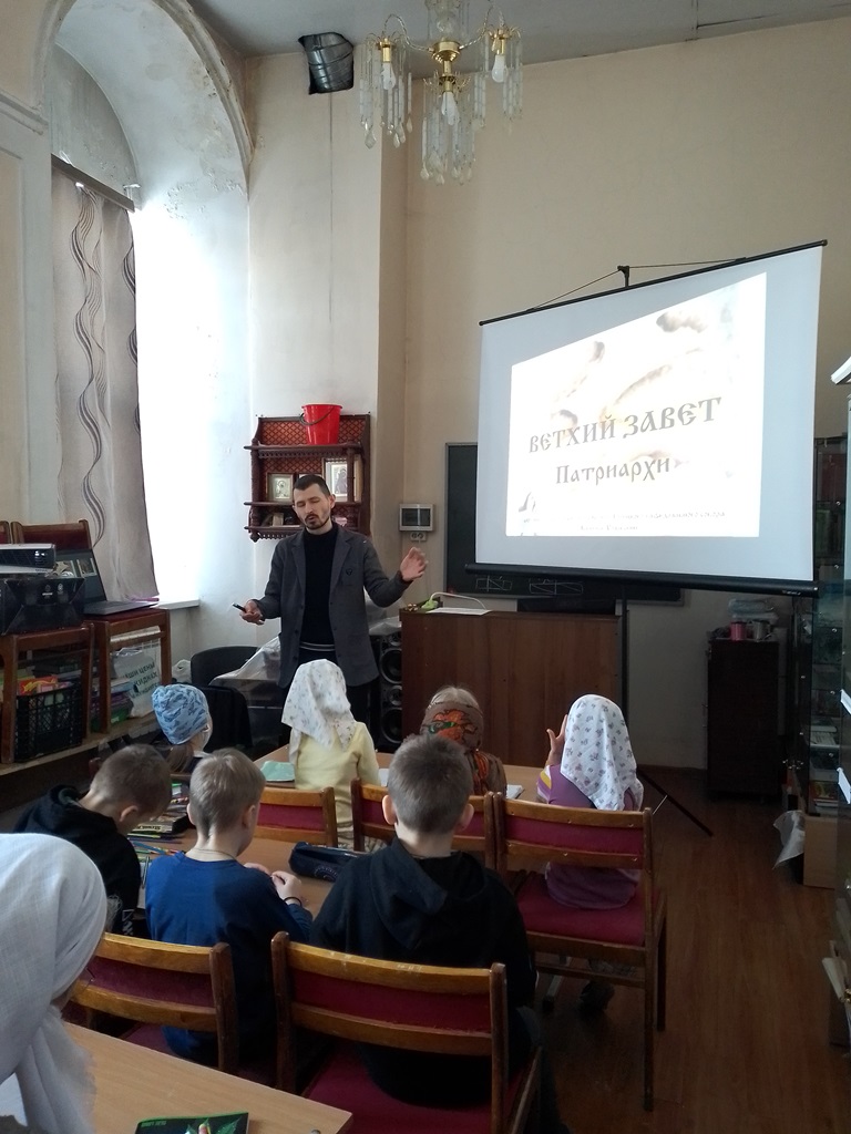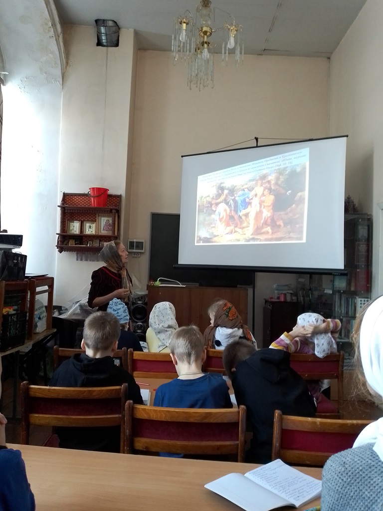 Прозвенел звонок и ребята отправились по кабинетам. Начались занятия. Мы побывали на одном из них. Воспитанники младшей группы с огромным интересом и вниманием слушали рассказ Адама Юнусовича про Авраама и сына его Исаака, про любовь Авраама к Богу и послушание Ему, про прекрасную Ревекку, про Исава и Иакова и чечевичную похлёбку. Малыши внимали каждому слову своего учителя и живо представляли Ветхозаветные картины того времени. А сердце радовалось, глядя на их чистые глаза, светлые лица, открытые сердца, потому что внутренне каждый из нас понимает, что здесь в Воскресной школе в детские души попадает доброе семя, которое обязательно в будущем даст свой добрый плод, нужно всего лишь научиться ждать.
