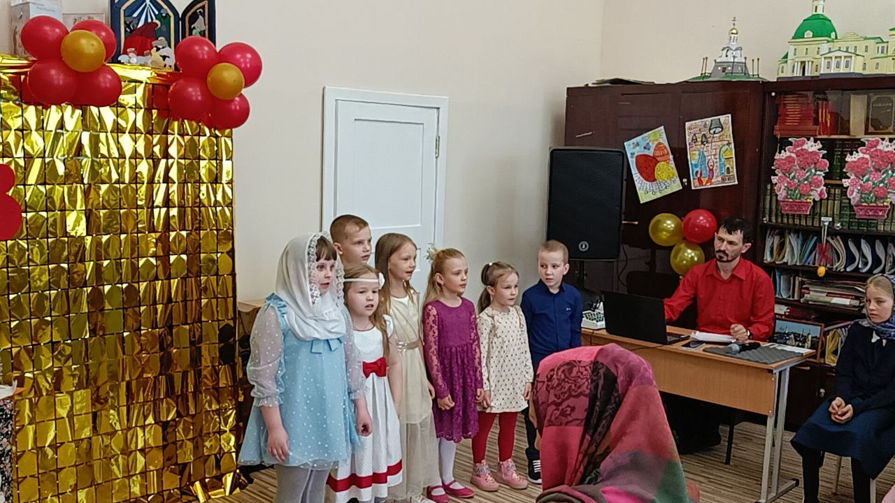 В Фомино воскресенье 23 апреля, на "Красную горку", в Воскресной школе Свято-Троицкого кафедрального собора день особый. Ребята вместе с родителями пришли на Пасхальный утренник. Все нарядные, весёлые, глаза чистые, лица светлые, радостные. По традиции пропели Праздничный тропарь и начали с Божией помощью Праздник. Пели песни, спектакль показавали, в сценках участвовали. И всё это делали с любовью, старались для воскресшего Христа. Получился замечательный утренник, тёплый и душевный, светлый и радостный, как Пасха Христова, как весна. И у каждого в душе частичка тепла и света, да и как иначе, ведь в сердце каждого нынче Христос.