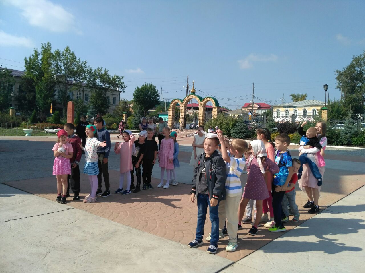 После молебна всем пристутствовавшим ученикам были подарены небольшие канцелярские наборы, которые, несомненно, пригодятся им для учёбы. А затем ребят ожидал праздник на свежем воздухе: игры, эстафеты и конкурсы на площадке возле собора. Конечно же, не обошлось и без угощения - вкусный чай, яблоки, плюшки, пряники и конфеты... Можно было попробовать всё и немного побаловать себя "вкусняшками", ведь Успенский пост уже завершился.