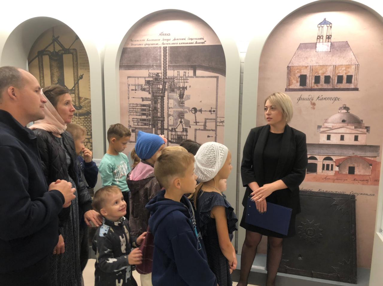 Ребята и их родители отправились в недавно реконструированный западный корпус музея, в котором выставлена интерактивная экспозиция «Каменск-Уральский: город-завод в трех измерениях (1682-1917гг)». Экскурсия была непродолжительной, но очень познавательной. Из рассказа сотрудника музея мальчишки и девчонки узнали, что история нашего города начинается аж с 1682 года и связана с именем преподобного Далмата Исетского. Ребята посмотрели на пушки, ядра и мортиры. которые изготавливались на Каменском заводе, потрогали гвоздь, скреплявший брёвна старой деревянной плотины на реке Каменке, позвонили в колокол, висевший на первой железнодорожной станции нашего города, узнали о купцах, выпускавших в нашем городе обувь и даже фарфор, посидели в учебном классе и в русской избе... В общем, всего не перечислишь!