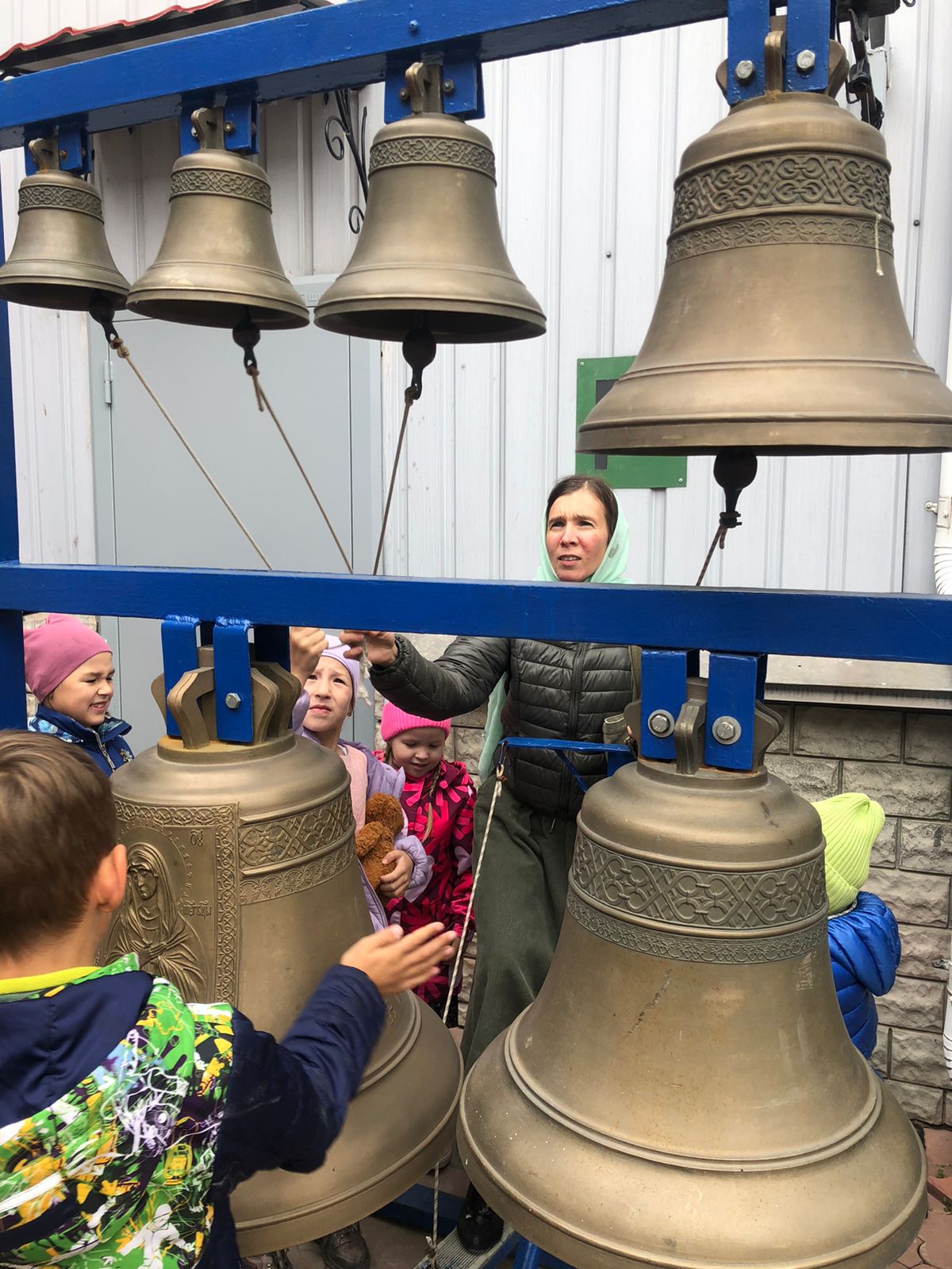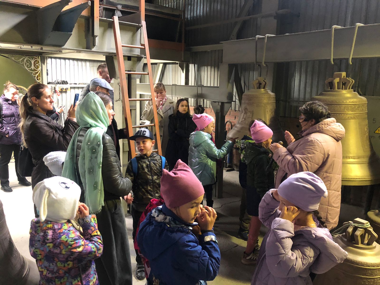 Во время экскурсии мальчишки и девчонки с завидным любопытством разглядывали каждую мелочь. Ещё бы, ведь не каждый день удаётся побывать в таком редком и удивительном месте! А сколько здесь интересного! Колокола разных размеров, с разными росписями и разного звучания.