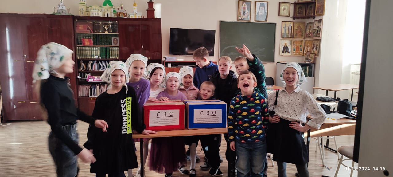 В Воскресной школе Свято-Троицкого кафедрального собора первая неделя Рождественского поста объявлена неделей добрых дел. И потому ребята решили собрать посылку для наших солдат, но не простую, а состоящую из консервов. Акцию так и назвали - "Консервы фронту". В ход пошло всё: тушенка, сгущёнка, зелёный горошек, кукуруза, фасоль, рыбные консервы и даже шпроты. Воспитанники с большой радостью наполняли коробки банками, каждый хотел проявить любовь к ближним, милосердие и сострадание. А сверху положили трогательные письма солдатам и замечательные рисунки. Доброе дело сделано, ребята довольны. Две коробки готовы отправится на передовую. И, слава Богу за всё!