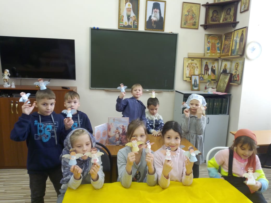 После всех занятий ребят вновь ожидал занимательный творческий кружок. На этот раз воспитанники делали прекрасных ангелов, лёгких и воздушных. И каждый из них оказался неповторим. Получилось просто замечательно! И слава Богу за всё!