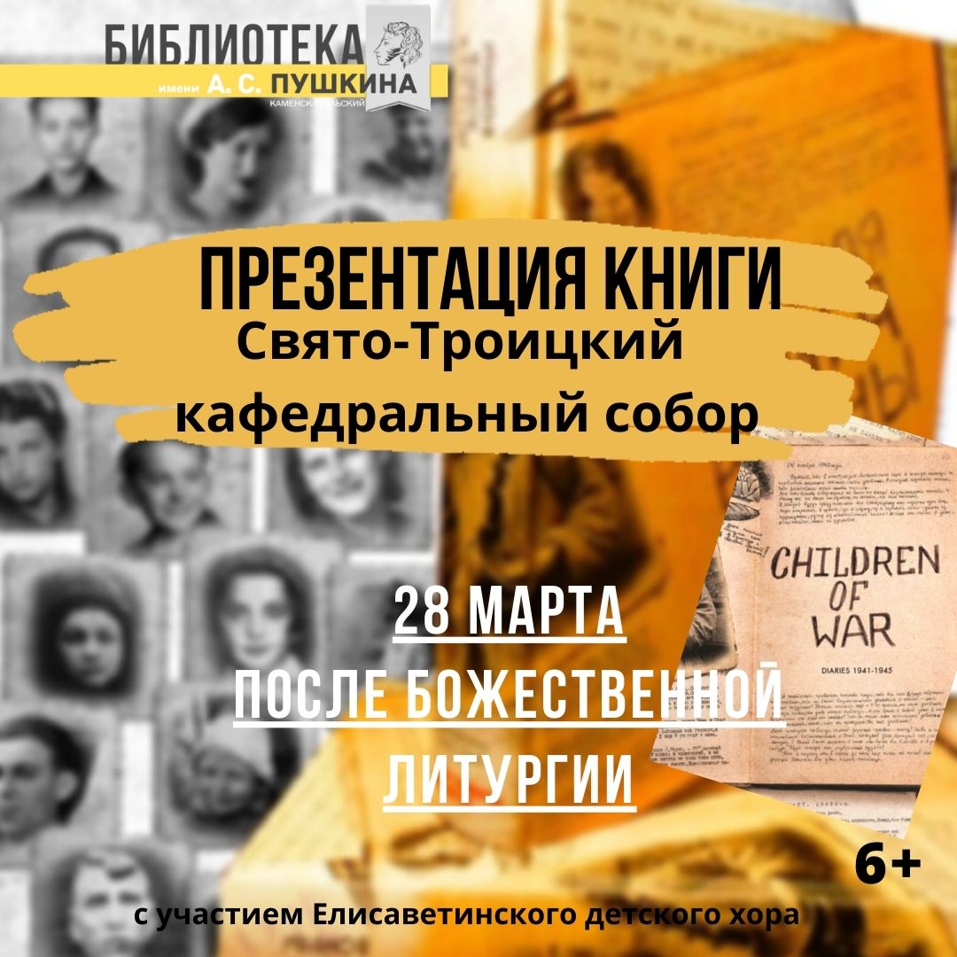 Приглашаем прихожан Свято-Троицкого кафедрального собора на презентацию книги "Дети войны", которая состоится 28 марта 2021 г. по окончании воскресной Божественной Литургии на втором этаже в большом классе Собора.