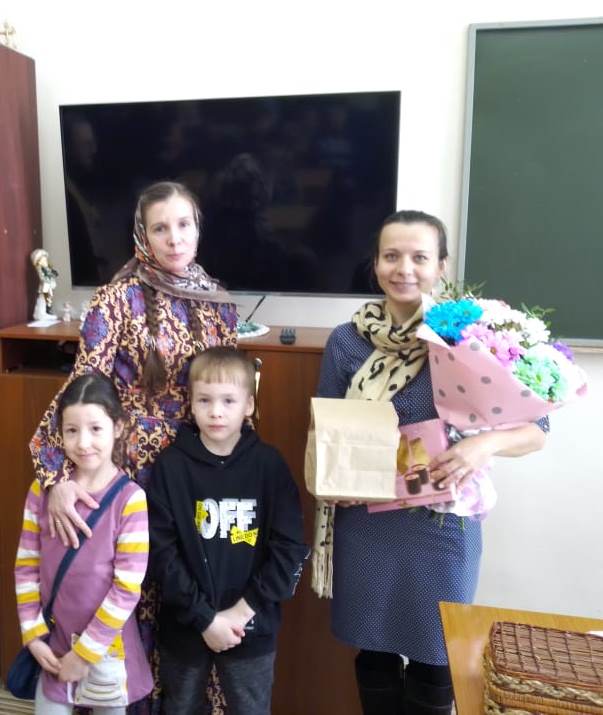 Ещё одним событием в этот день стало поздравление с предстоящим Днём Рождения дорогой и всеми любимой завуча Воскресной школы Собора Веры Равильевны Бурнаевой. Тёплые и добрые слова сказал отец Дмитрий, а родители и воспитанники Воскресной школы присоединились к словам поздравления и по традиции пропели ей многая и благая лета.