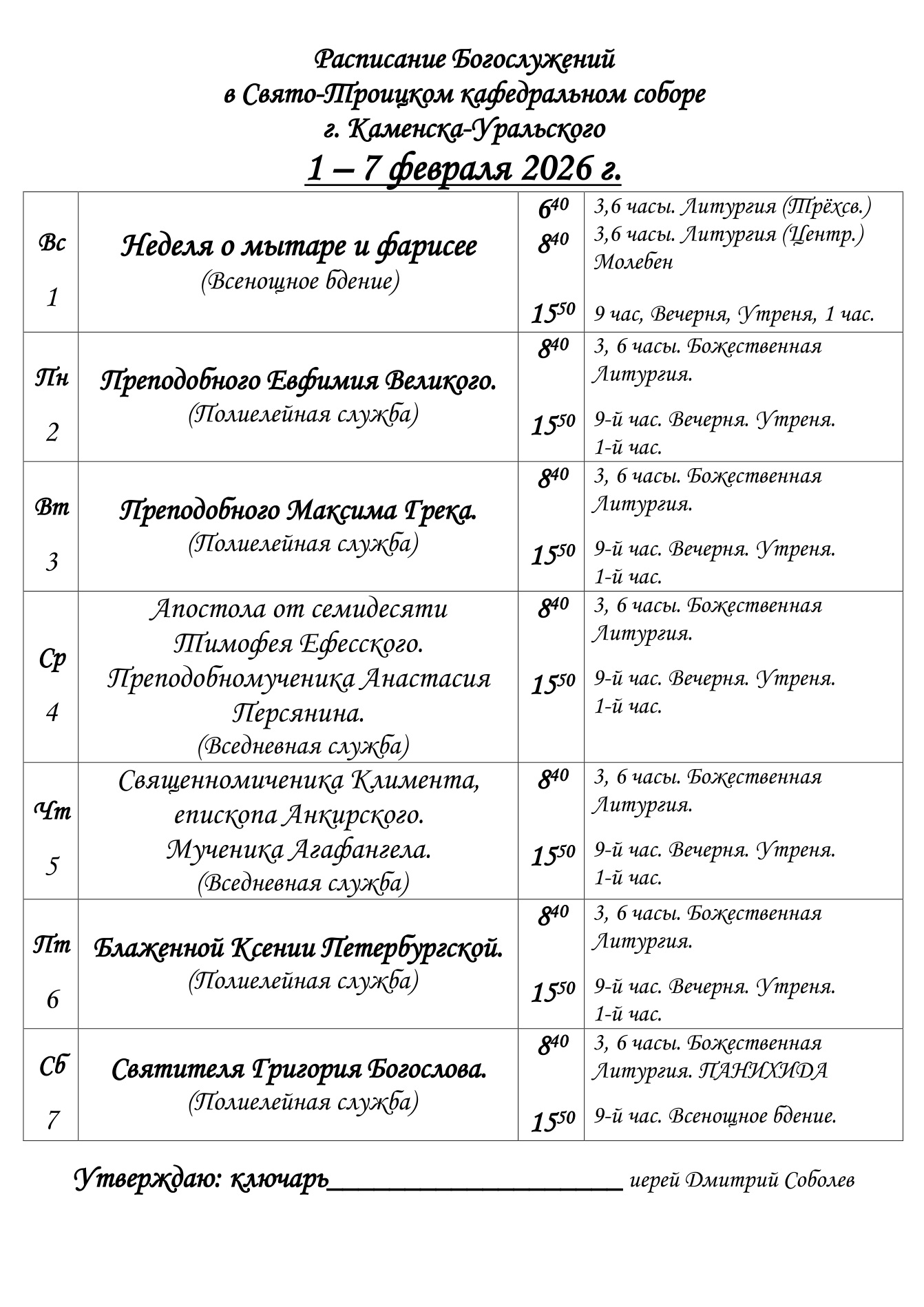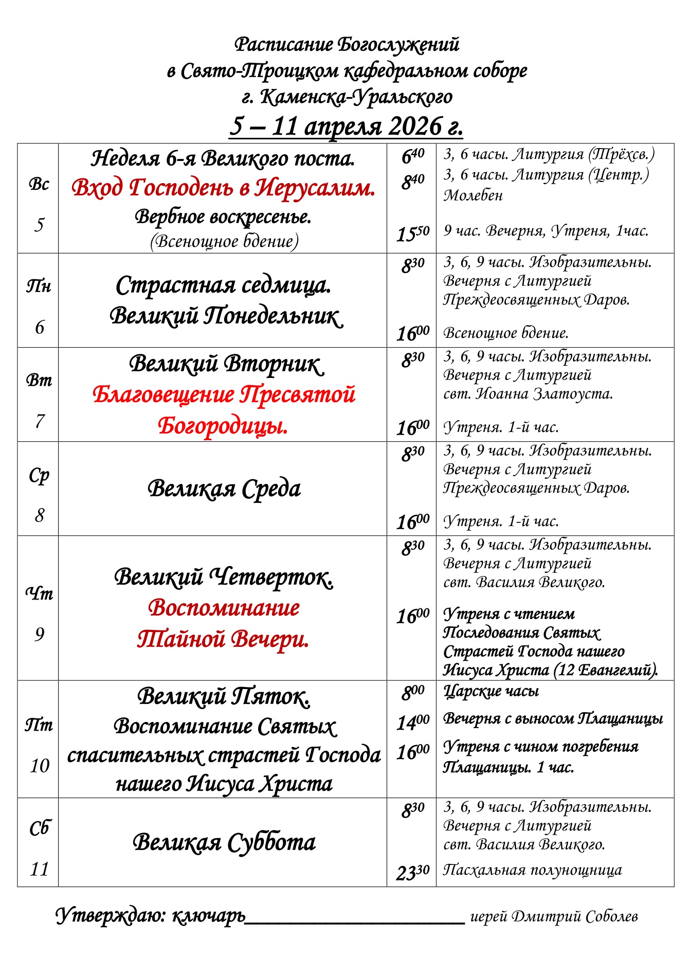 *Исповедь совершается ежедневно во время вечернего богослужения, начало молитв перед Исповедью в 15:40.